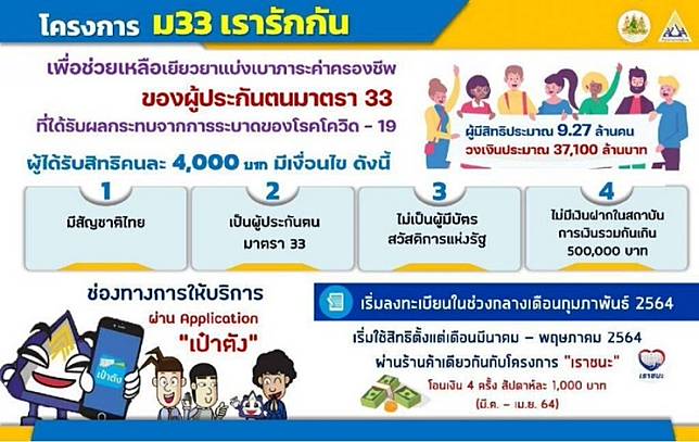 May 20, 2021 · ม.33เรารักกัน รอบใหม่ ม.33 โอนเงิน เงินเข้าวันไหน เช็คสิทธิ์ ตรวจสอบสถานะ เป๋าตัง May 06, 2021 · สำหรับโครงการ ม.33เรารักกันสิทธิของผู้ประกันตนมาตรา 33 เงินเพิ่ม 2,000 บาท แบ่งเข้างวดละ 1,000 บาท 2 สัปดาห์ คือวันที่ 20 พ.ค.